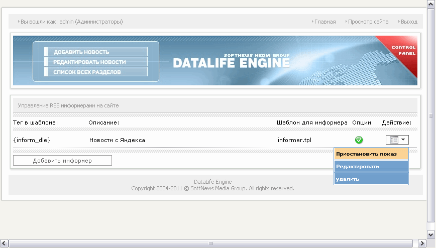 DataLife Engine v.9.0 - это многопользовательский новостной движок, обладающий большими функциональными возможностями. Движок предназначен, в первую очередь, для создания новостных блогов и сайтов с большим информационным контекстом. Однако он имеет большое количество настроек, которые позволяют использовать его практически для любых целей. Движок может быть интегрирован практически в любой существующий дизайн и не имеет никаких ограничений по созданию шаблонов для него. Еще одной ключевой особенностью DataLife Engine - является низкая нагрузка на системные ресурсы. Даже при очень большой аудитории сайта нагрузка не сервер будет минимальной и вы не будете испытывать каких-либо проблем с отображением информации. Движок оптимизирован под поисковые системы, что приведет на ваш сайт дополнительных клиентов. Использование продвинутой технологии AJAX позволит вам сэкономить вам ваш трафик и трафик посетителей, а также снижает нагрузку на сервер.